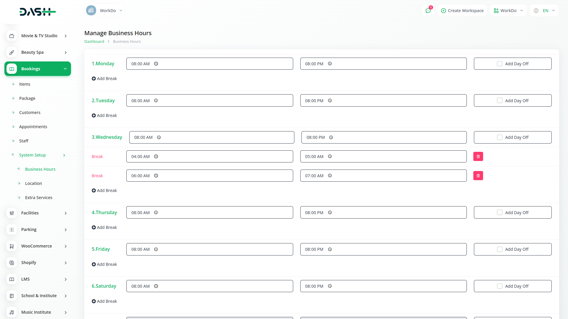 Get valuable insights into your booking trends and business performance with the Dash Saas Bookings Module/s analytics. Track important metrics like appointment numbers, peak booking times, and customer preferences. Use this data to make better decisions about staffing, marketing, and services. Our simple reports and dashboards give you a clear view of how your booking system is doing, helping you improve efficiency and profitability. Plus, you can manage bookings from both the backend and frontend, giving you complete control and flexibility over your scheduling process.
