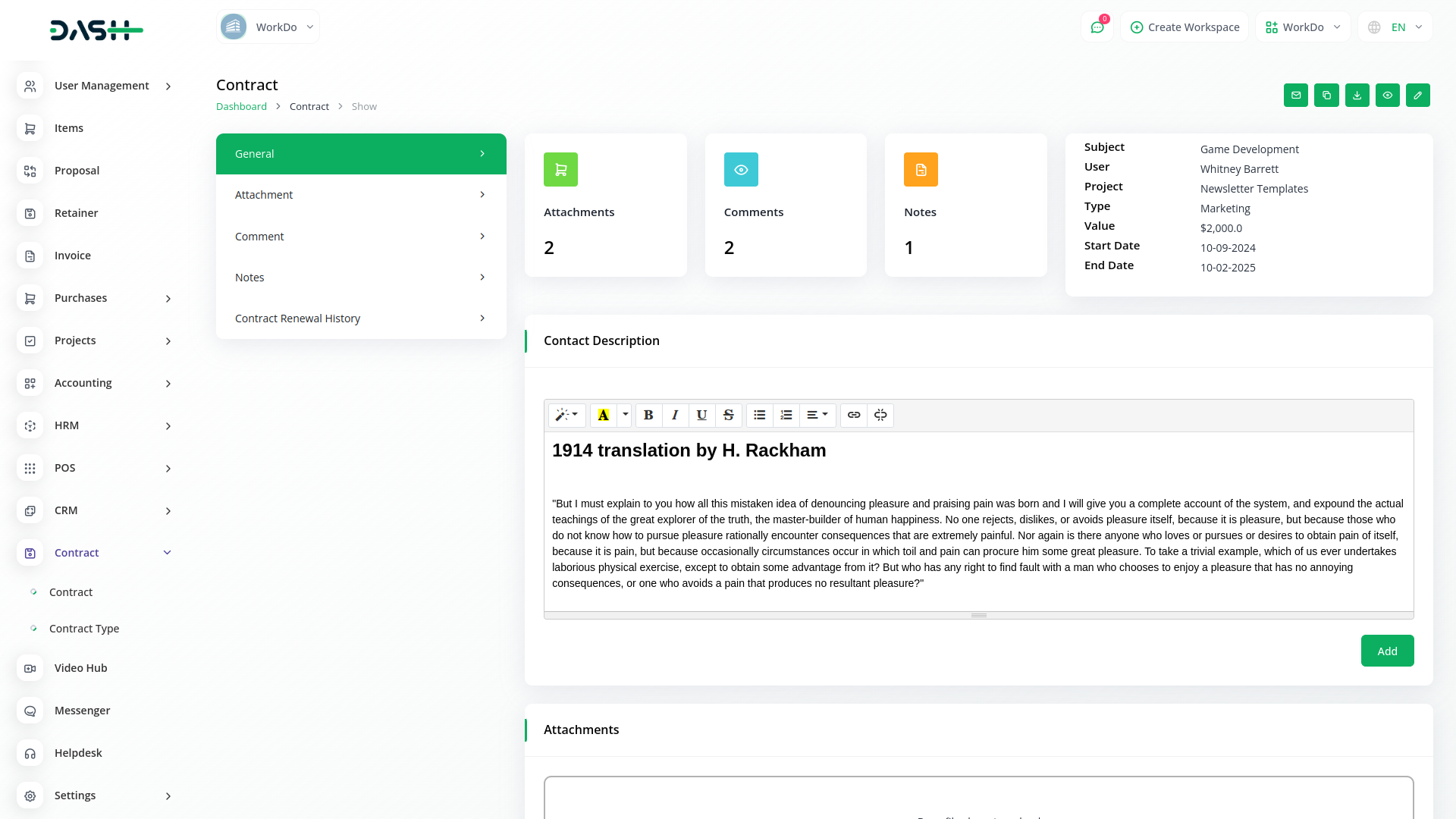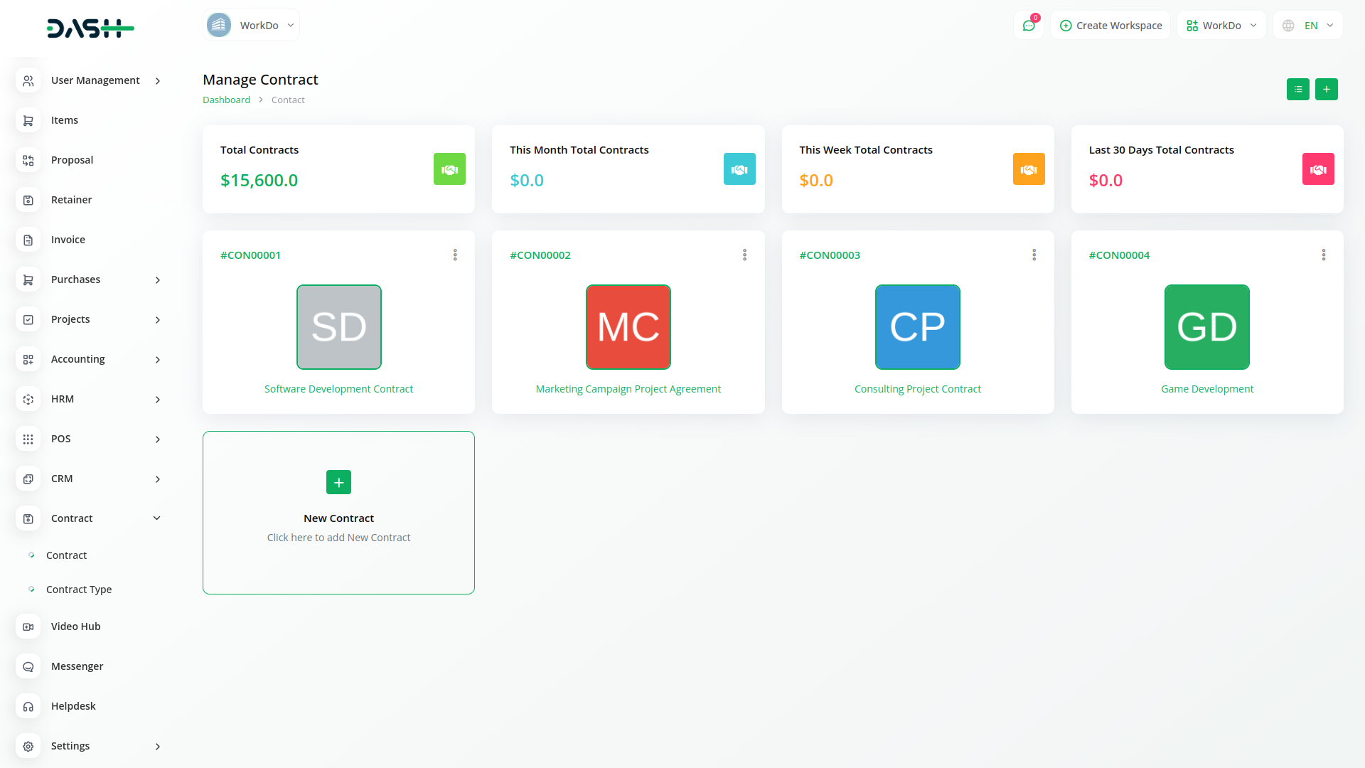 Contract Module is very helpful for proper documentation of the contracts done with clients showing the type of contract, the value, and time duration. The predefined settings can be done/ updated through Setup.