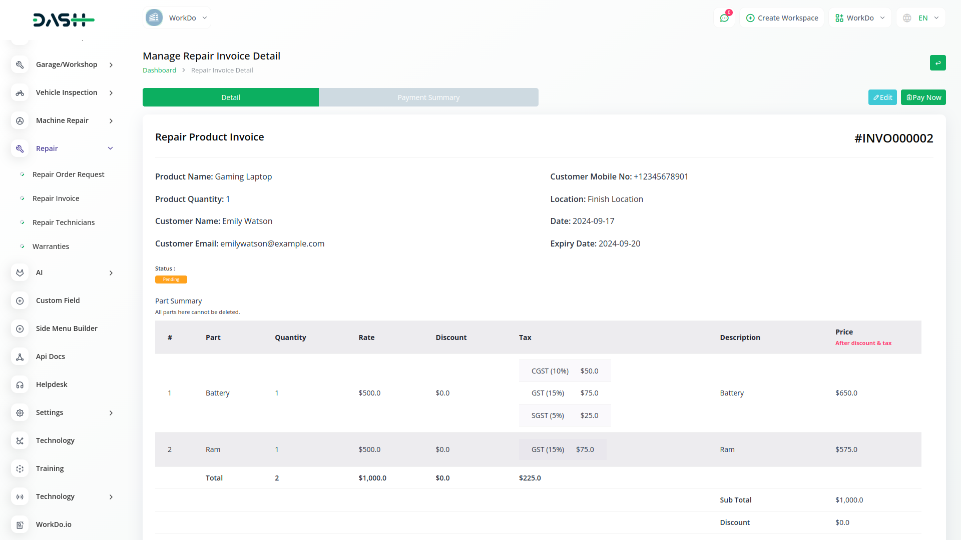 In addition to managing repair orders, our module offers robust scheduling and progress-tracking features. Whether you are planning repairs for multiple clients or monitoring the status of ongoing tasks, Dash SaaS provides real-time updates and notifications to keep you informed every step of the way.
