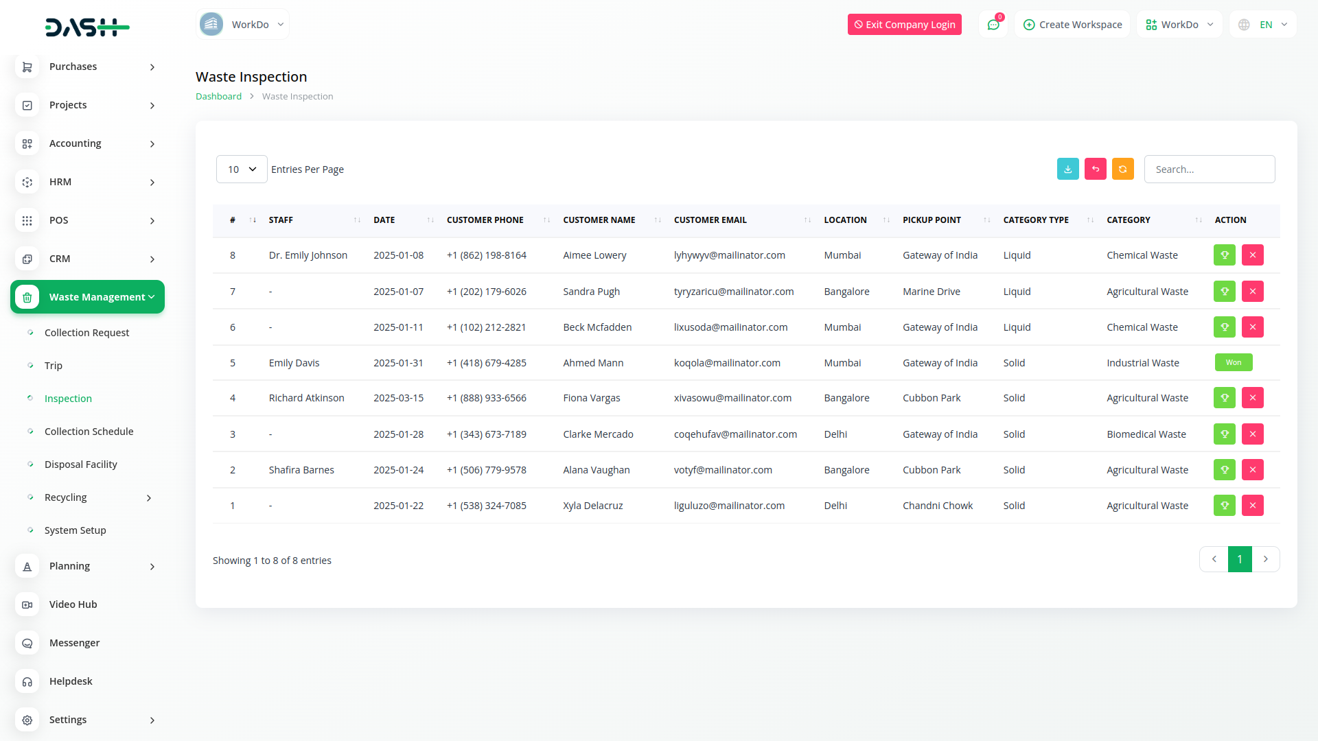 The Waste Management System module is a comprehensive solution designed to streamline waste collection processes for businesses and municipalities. From submitting collection requests to managing inspections, our module offers end-to-end functionality to optimize waste management operations.